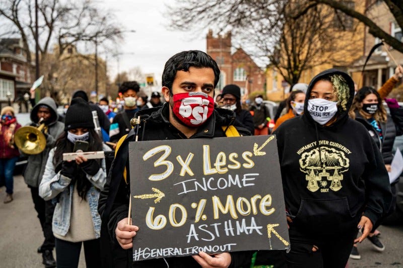 This problem is not isolated to manufacturing towns — on the Southeast side of Chicago, Trinity Colon grew up thinking it was normal for everyone to have asthma. Raised in the shadows of industrial plants in Chicago, she remembers the rituals of wiping dirt off windows or the twice-annual-drive to the doctor when her bronchitis acted up. Colon is currently on a hunger strike to protest the creation of a toxic metal shredding site in the neighborhood, which would sit right next to two nearby Superfund sites.