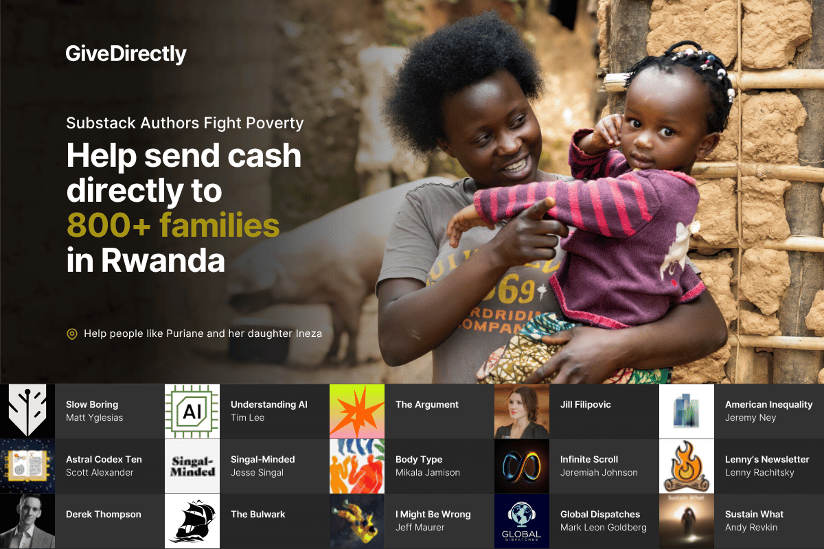 I’m joining a group of Substackers to raise money for 800 families in Rwanda who are struggling under intense poverty.