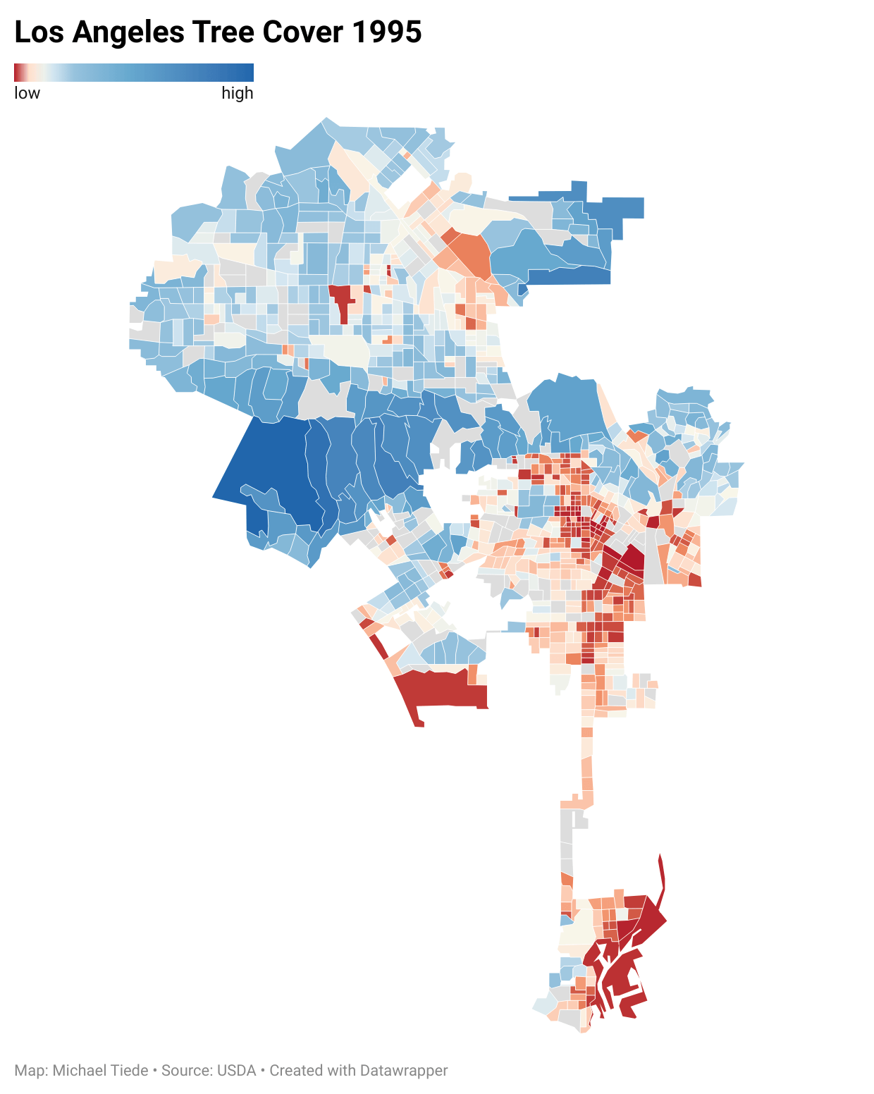 The benefit of tree coverage is not just for animals and for long stretches of forest scattered across the nation. Trees are a critical part of urban landscapes that keep air clean, that provide critical shade, and allow children to play outside without threat of overwhelming heat. In low-income areas, however, those trees are often absent.